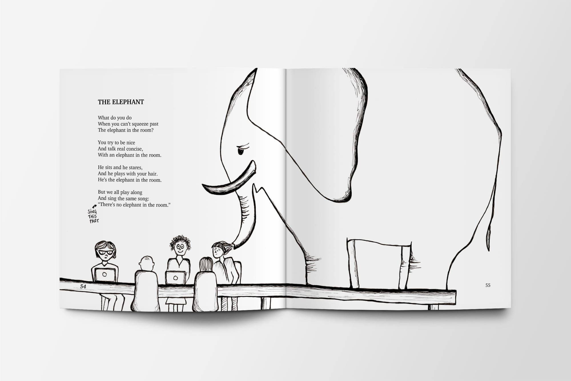 The whole thing had a predictable rhythm. It could be funny, even absurd, if we let it be. But speak of the elephant in the conference room, and youâd likely get awkward eye daggers.